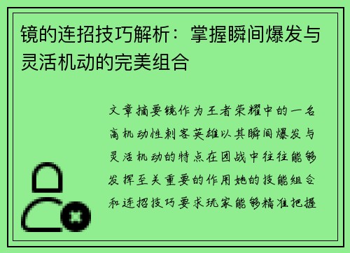 《全民奇迹》是一款深受玩家喜爱的多人在线角色扮演手游。游戏中的战力提升是玩家成长的核心,尤其对于新手来说,如何快速有效地提升战力,成为游戏中的强者,是每个玩家都需要思考的问题。本文将通过全面解析《全民奇迹》手游的提升战力技巧与新手进阶指南,帮助玩家在游戏初期就能获得更高的战力。文章将从四个主要方面进...